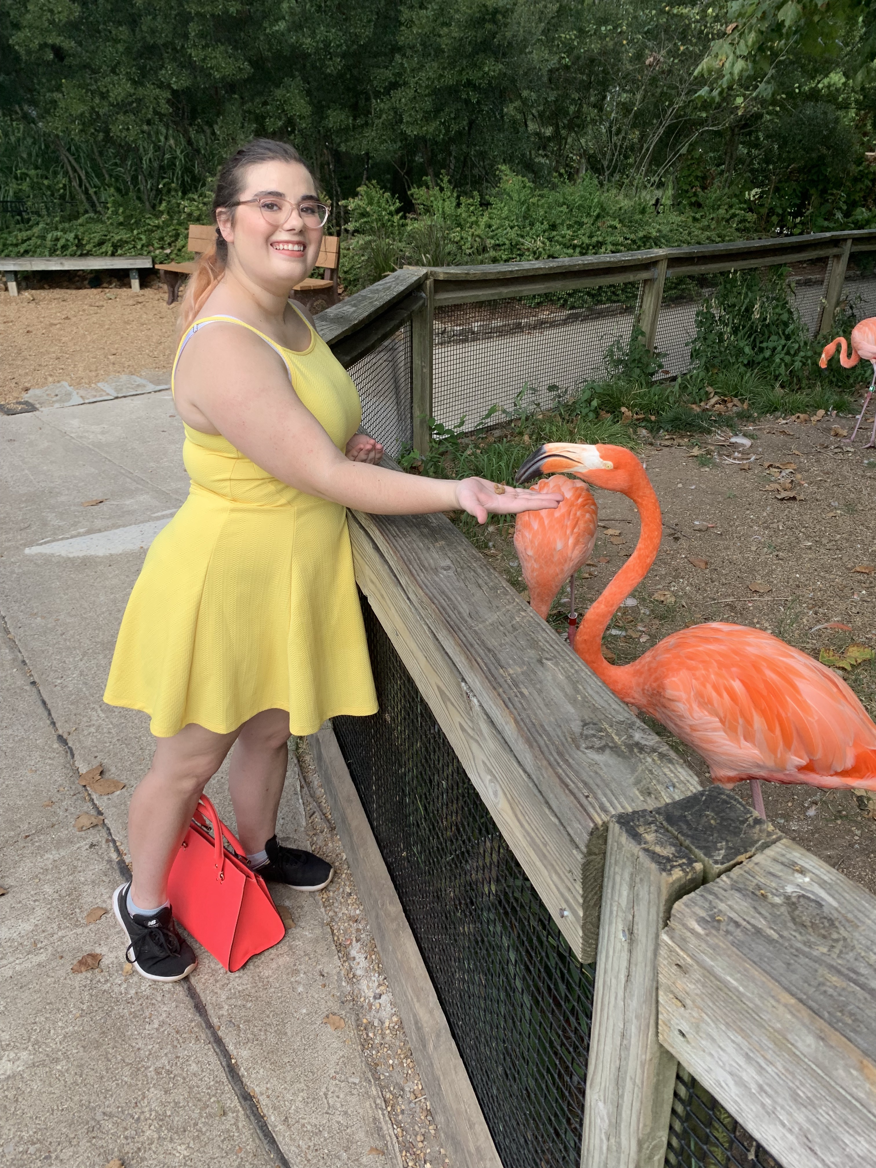 - Flamingo- I'm obsessed with their aesthetic and they have very soft duck like feathers but they make a horrible sound and their beaks split open like some sort of eldritch beast. 100/10