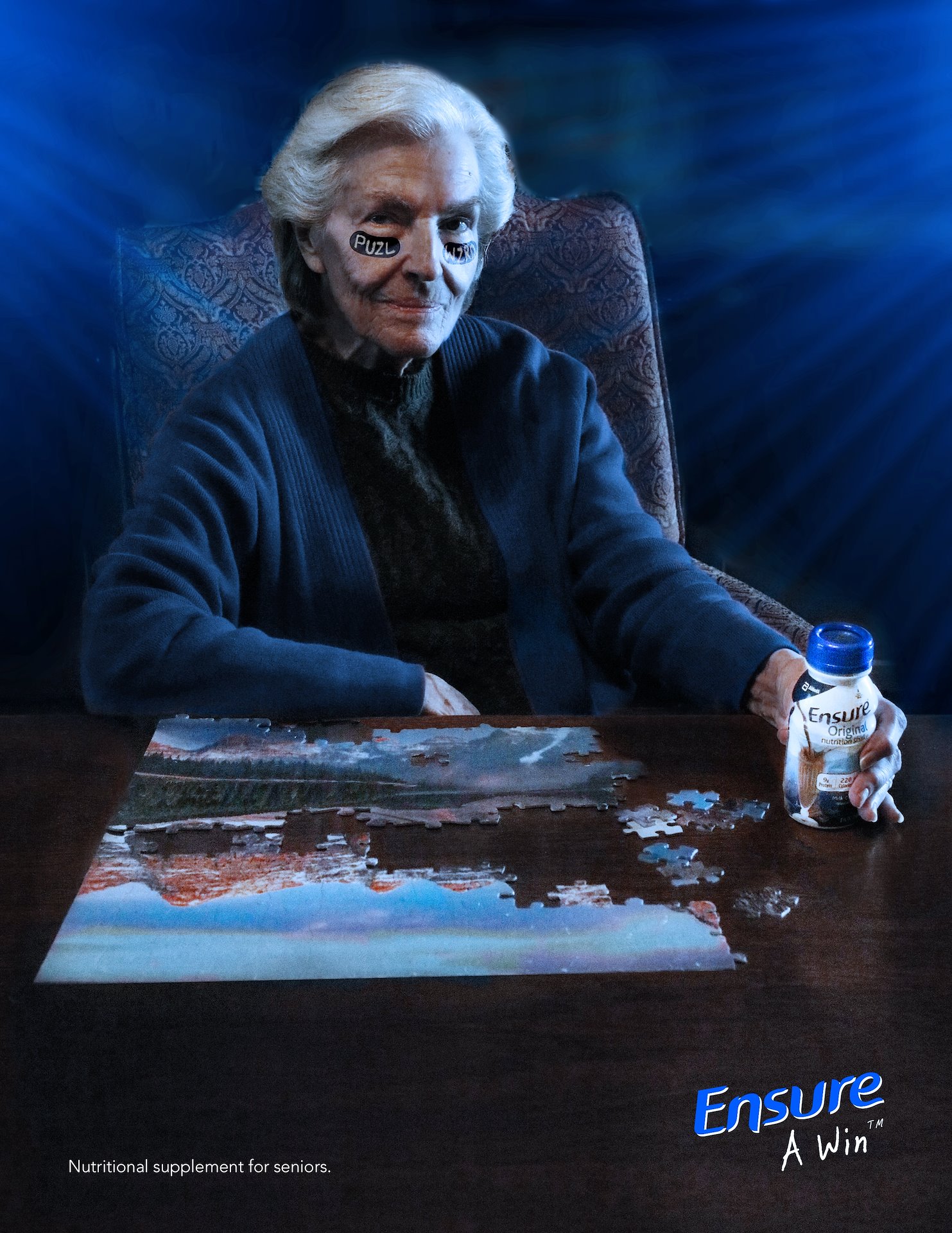 Idea: Use the visual language and of sports drink ads to light heartedly illustrate to caregivers that ensure keeps seniors at peak performance.