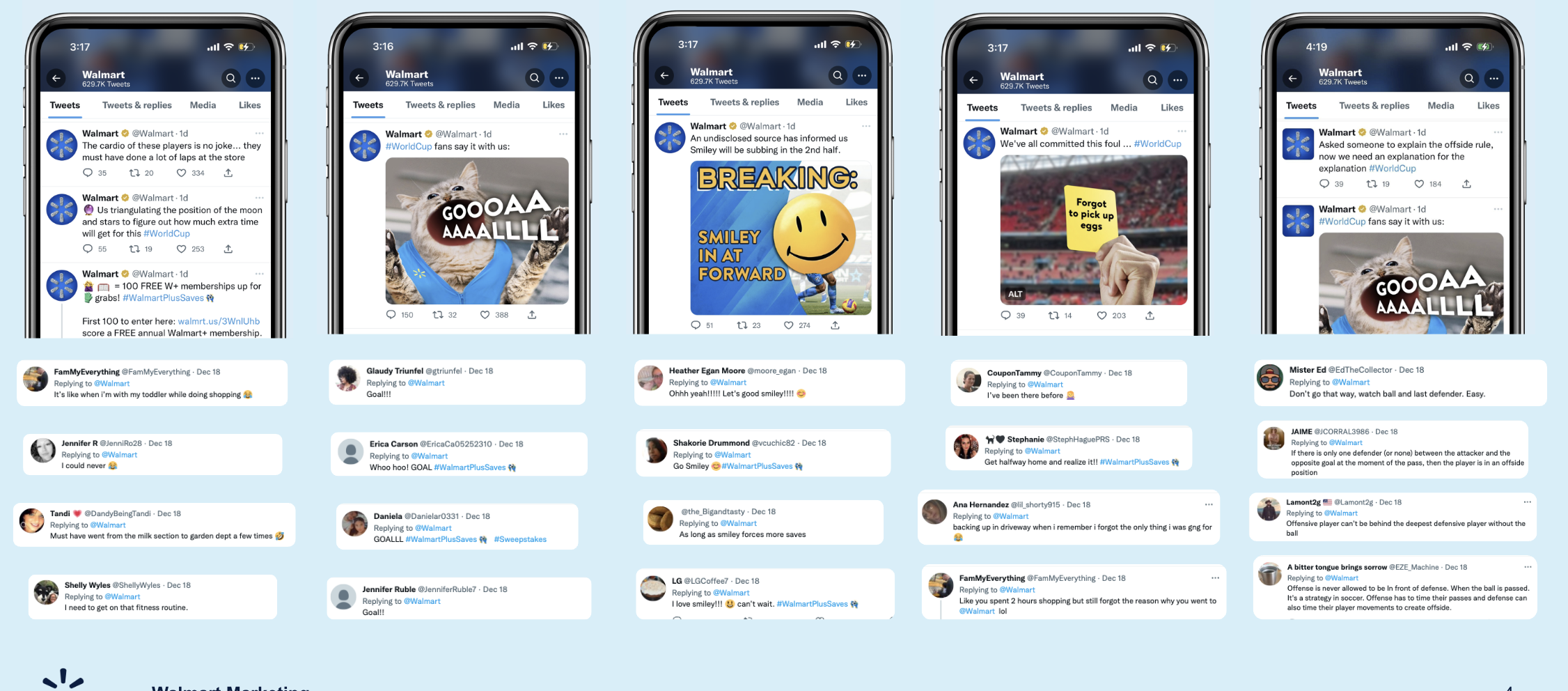 During the final two matches of the 2022 FIFA World Cup on December 17 and 18, Walmart leaned into the excitement of game play to promote Walmart+ member savings through a Twitter campaign called #WalmartPlusSaves.